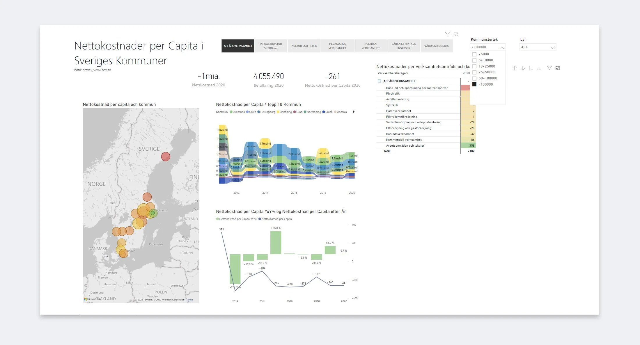 Numberskills lösningen bygger på en direkt länkning av SCB:s API in i Power BI.